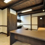 1Fの事務所のテーブル・イス、カウンター類は全て、当社オリジナルで製作しました。