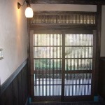 玄関は、デザインを優先して無垢の千本格子の引き違い戸にしました。