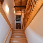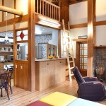 薪ストーブのある広いLDKは、小屋裏スペースも活用したこの住まいの中心です。料理好きのご主人の要望で、キッチン真裏の壁面に開口部を設け、さばいた魚が運べるようにするなど、細かい点にも配慮しプランしました。