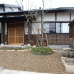 ハナミズキを始め、ヤマボウシなど15種類以上の山の木に囲まれた U邸。数年後のアプローチの変貌が愉しみです。