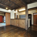 床の杉板も濃い目にして、古民家の様な空間に仕上げました。