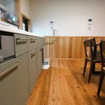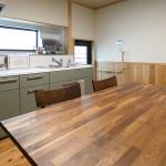 キッチンダイニングは当社造作の家具を造りつける事で機能性の向上とダイニングスペースのゆとりの確保、空間全体のインテリアに一体感を持たせることができました。