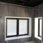 浴室の窓もブラインドインにして、庭の眺望が楽しめるようにしました。
