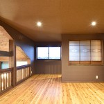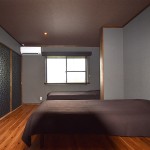 基本設計は、旧家屋部分をLDK・畳コーナーを設けた吹き抜け空間にしました。また、増築部分をゲストルームと主寝室、洗面浴室に配置しました。