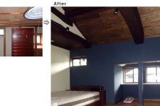 2階は新たにトイレ・洗面を設け、寝室は、梁を現わしにして古民家テイスト溢れる空間にしました。