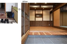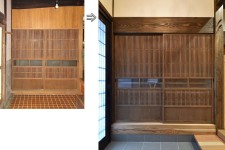 玄関収納の建具も、この家にあったものを調整して再利用し、古さとモダンさの調和を心掛けました。